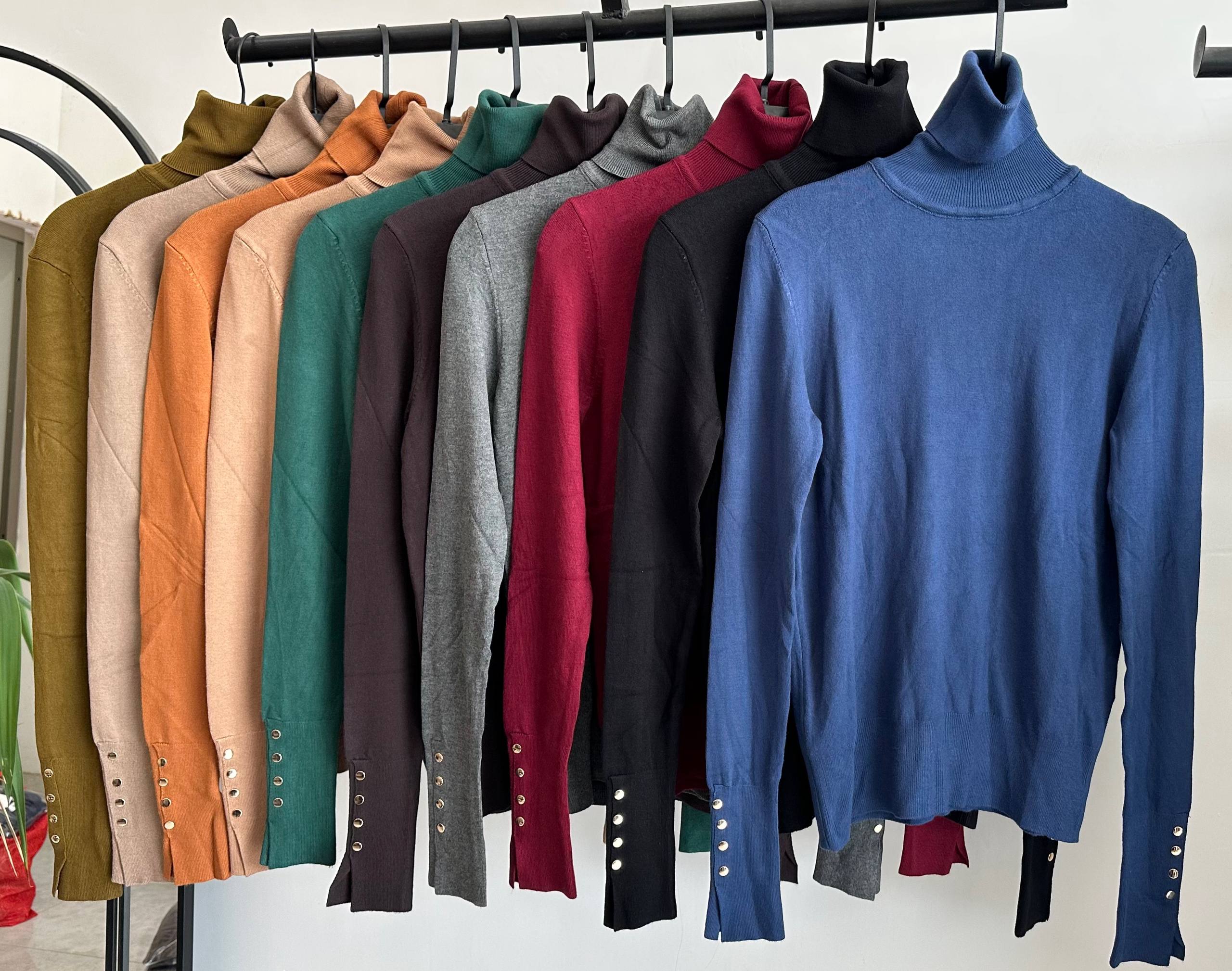 بلوز بافت زنانه یقه اسکی Dilvin بافت ظریف و گرم | با سرآستین دکمهدار