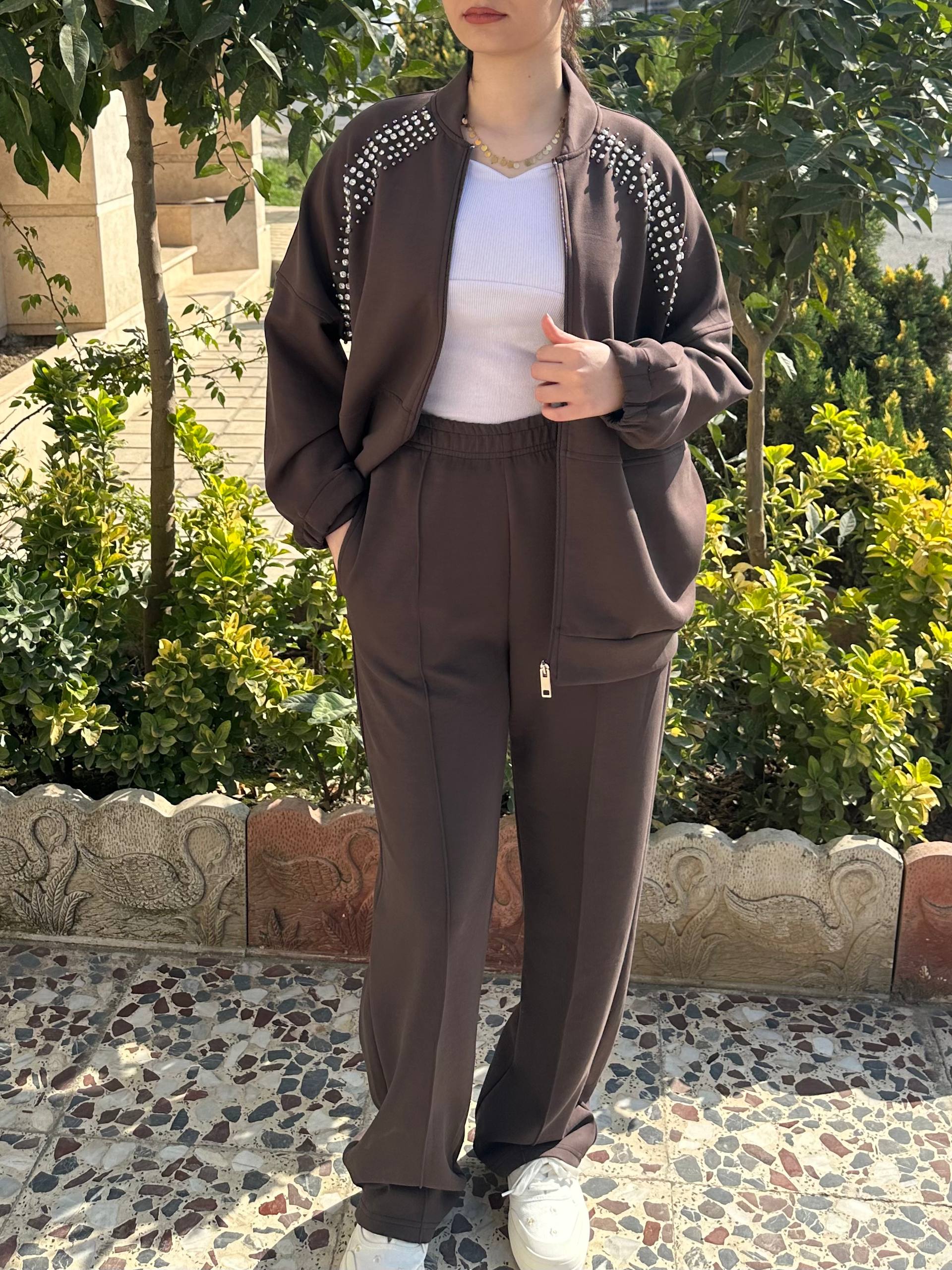 محصول: ست بامبر و شلوار، ست ورزشی شیک، ست نگیندار زنانه
