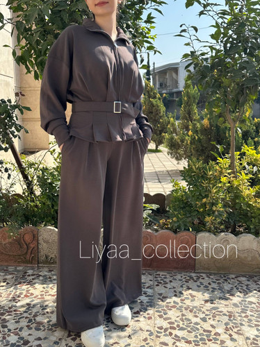 ست بامبر (سویشرت زیپدار) و شلوار نگین دار زنانه مدل اویشو